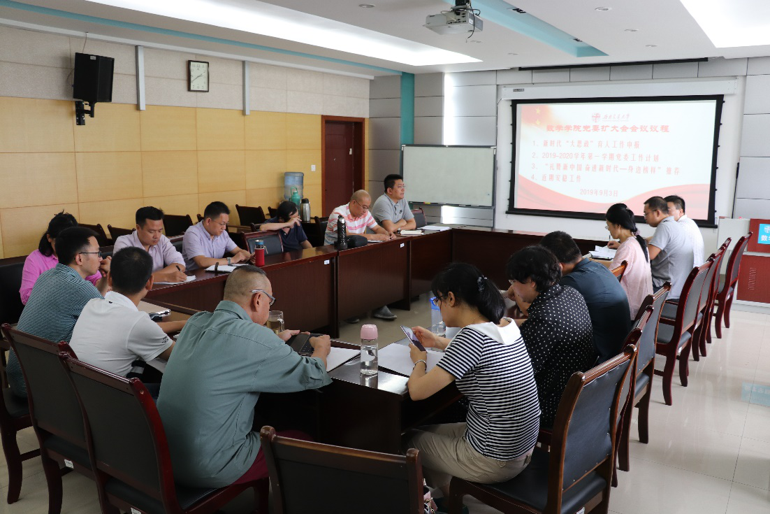 2019年9月3日下午,雷竞技RAYBET最新版2019年第五次党委中心组(扩大)学习会议在犀浦校区X2511会议室召开。会议由党委书记徐革主持,学院党政领导班子成员、党委委员、纪委委员、系主任和教工党支部书记等参加,认真学习贯彻习近平总书记在“不忘初心,牢记使命”主题教育工作会议上的重要讲话精神。