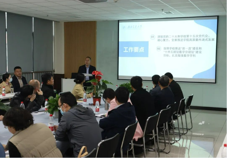 杨晗院长在大会上汇报了雷竞技RAYBET最新版2022年工作要点,强调学院工作要做到教学与科研并重,全面推进学院的高质量内涵式发展,增强团队建设,加强博士点建设,积极完成服务全校公共学科课程建设任务。