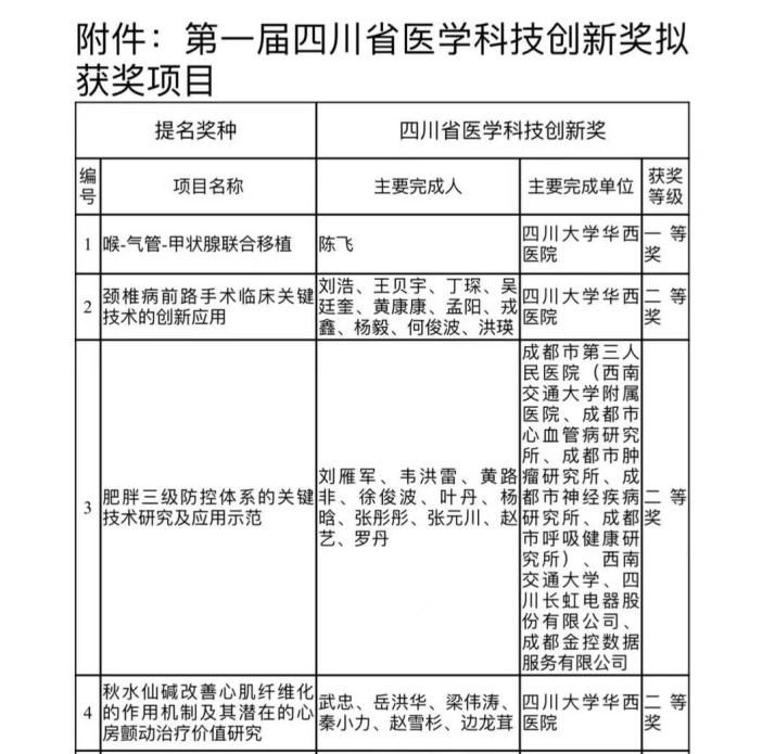 近日,四川省首届医学科技创新奖揭晓,由雷竞技RAYBET最新版国地实验室副主任韦洪雷和院长杨晗作为主要完成人,联合成都市第三人民医院及其他合作单位的项目《肥胖三级防控体系的关键技术研究及应用示范》荣获四川省医学科技创新二等奖!